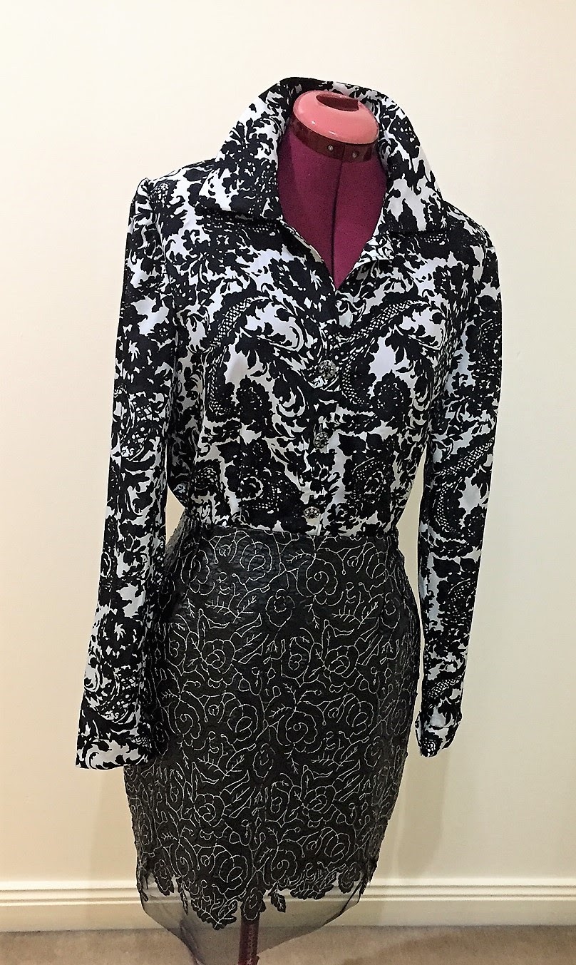 I’ve used my pencil skirt block and a basic shirt pattern. As crazy as mixing prints together can be, I felt these two fabrics would be great together. I only have access to what I can see from Minerva Crafts website and I was really pleased when the fabrics and notions arrived at my doorstep.