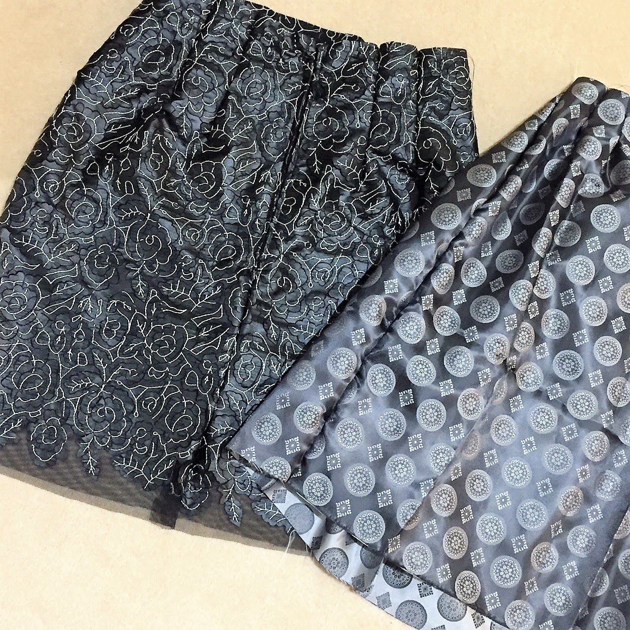 For the skirt, I had to choose a lining for the skirt to keep it stable over time. Well…I chose this jacquard lining. There’s something so appealing when a skirt has interesting linings. I chose the darker side of the lining to show on the inside of the skirt.