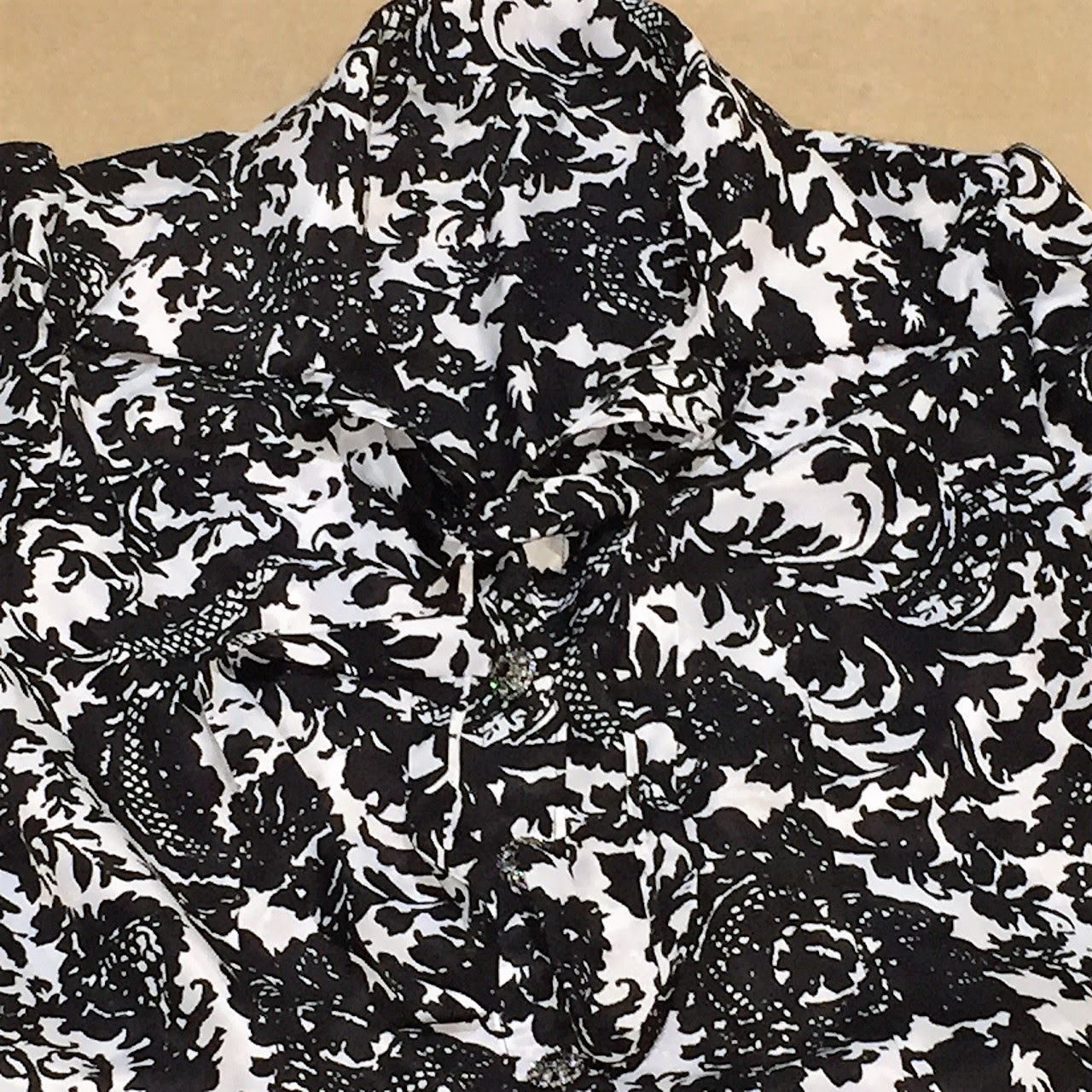 This Italian floral silk has a bold, all over floral paisley print. It’s a great print and you need to pay attention to the right and wrong side of the fabric. The print is more striking in real life.