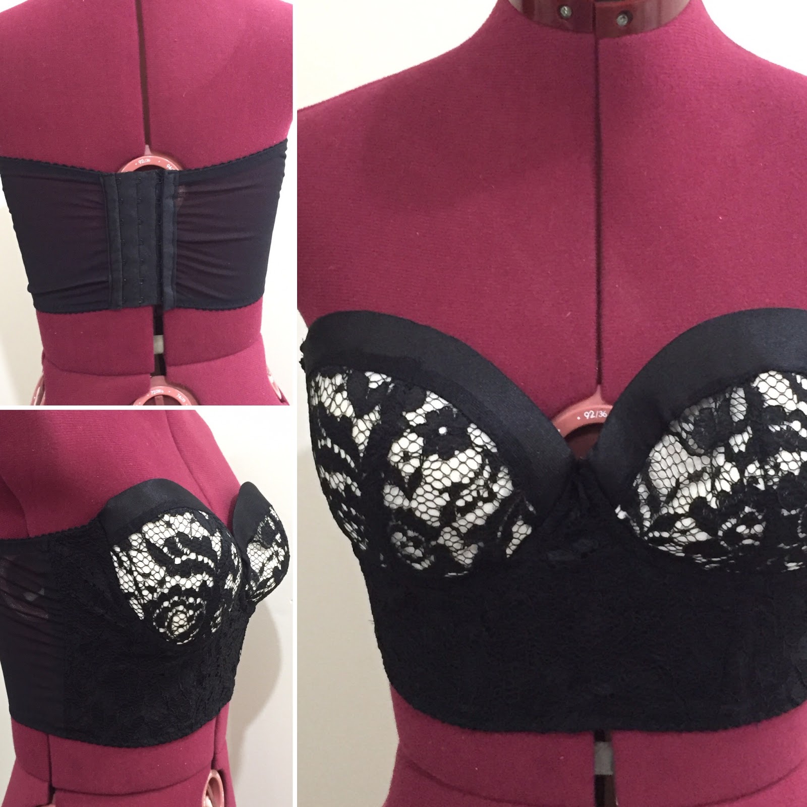 The key pattern adjustment was where I took out about 1.5cm out of the top edge of the upper cup.