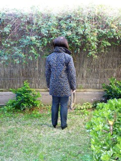 I used Butterick 6062 as the basic jacket shape. The darts weren’t sewn. I have a habit of using this pattern for longline coats to keep me warm.