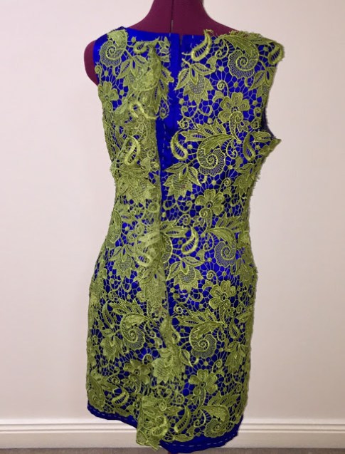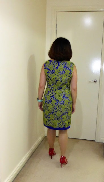 This photo gives you a glimpse of the lace matching work that I had to do so the back lace is uninterrupted and fits my shape.