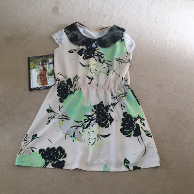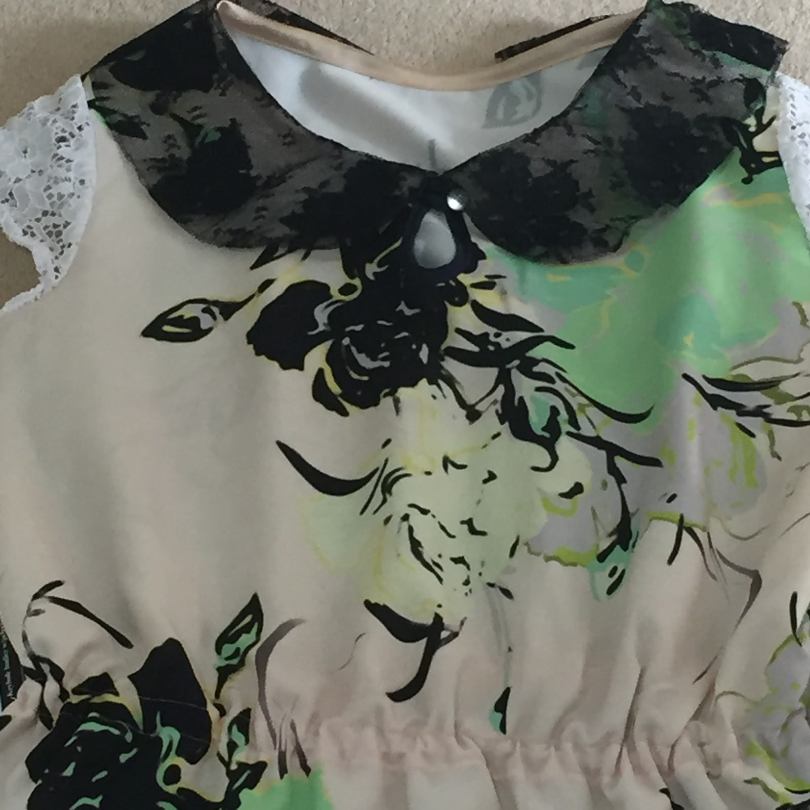 All of these fabrics are Pitt Trading remnants. There are florals on the lace pieces and the dress fabric has a huge floral print on it.
