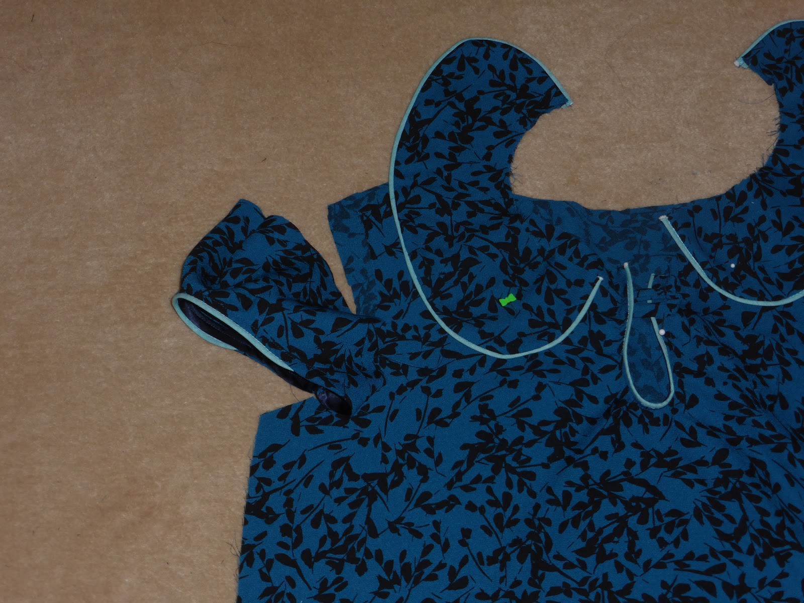 When I started making this dress, the collar pattern somehow left my sewing space, so I grabbed a basic peter pan collar pattern as my substitute.