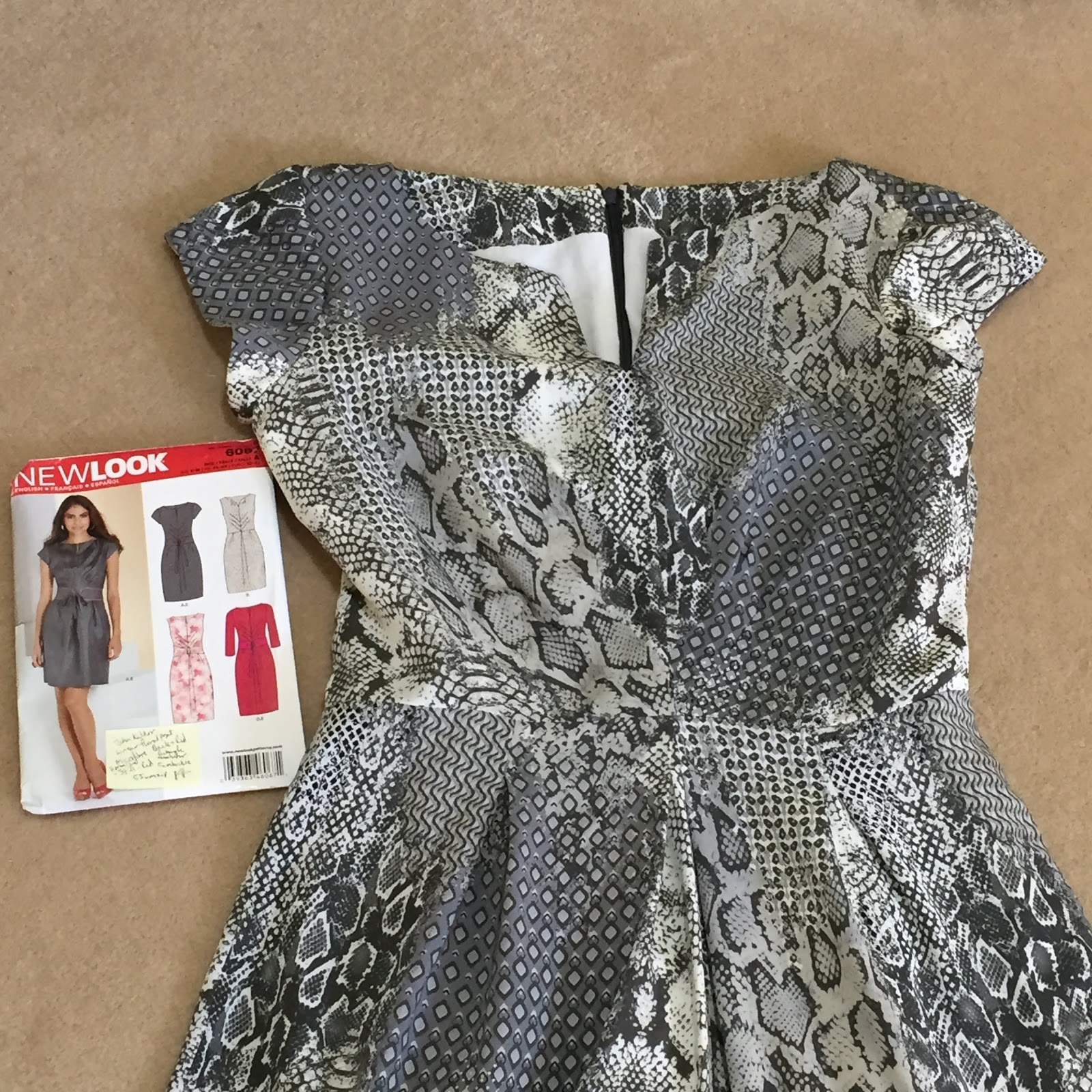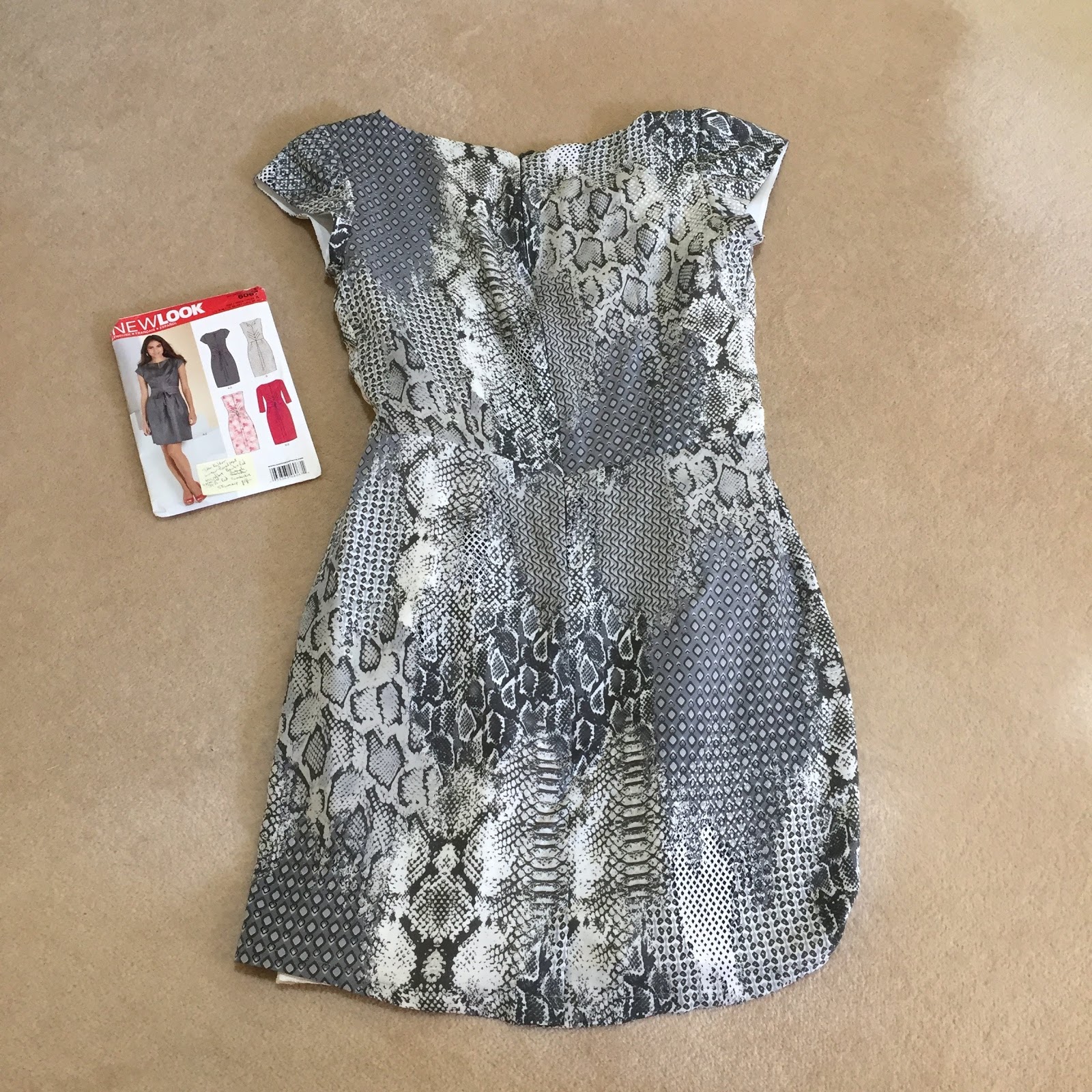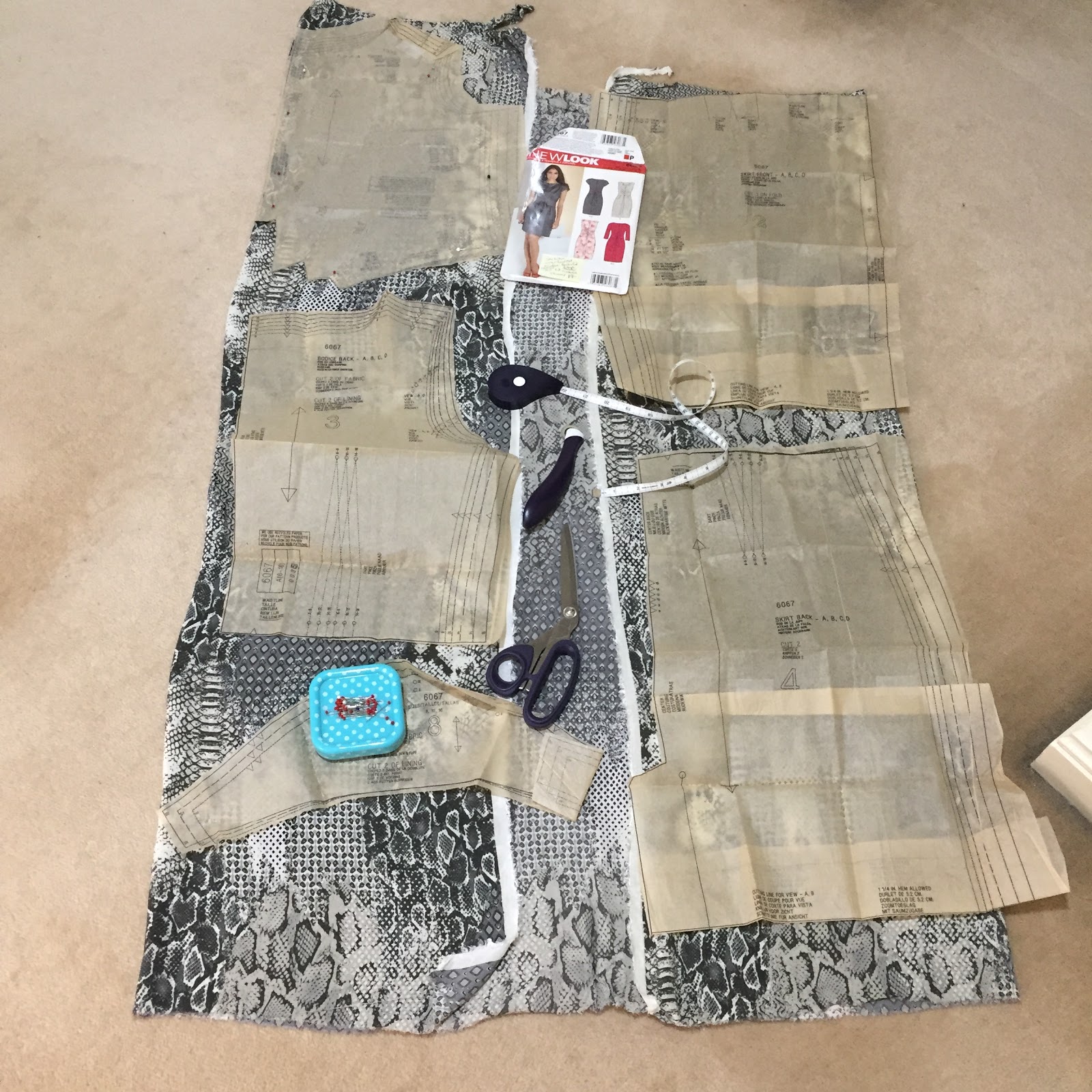 While the pattern New Look 6067 said I needed 1.4m of fabric, I only had 1.1m of fabric left from my original dress 2 years ago.