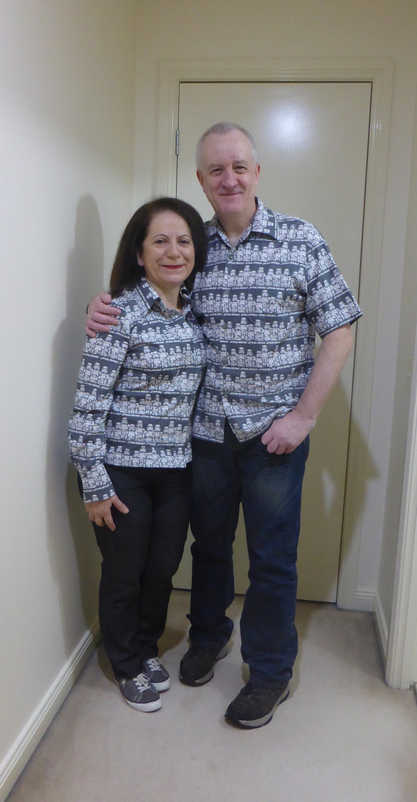 Mr V got his wife-made shirt a few years ago using a vintage Vogue pattern. He loves his BBQ shirt and only wears it on special occasions, like today.