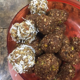 7. Roll the balls into the pistachio mix until the ball is coated with pistachios.