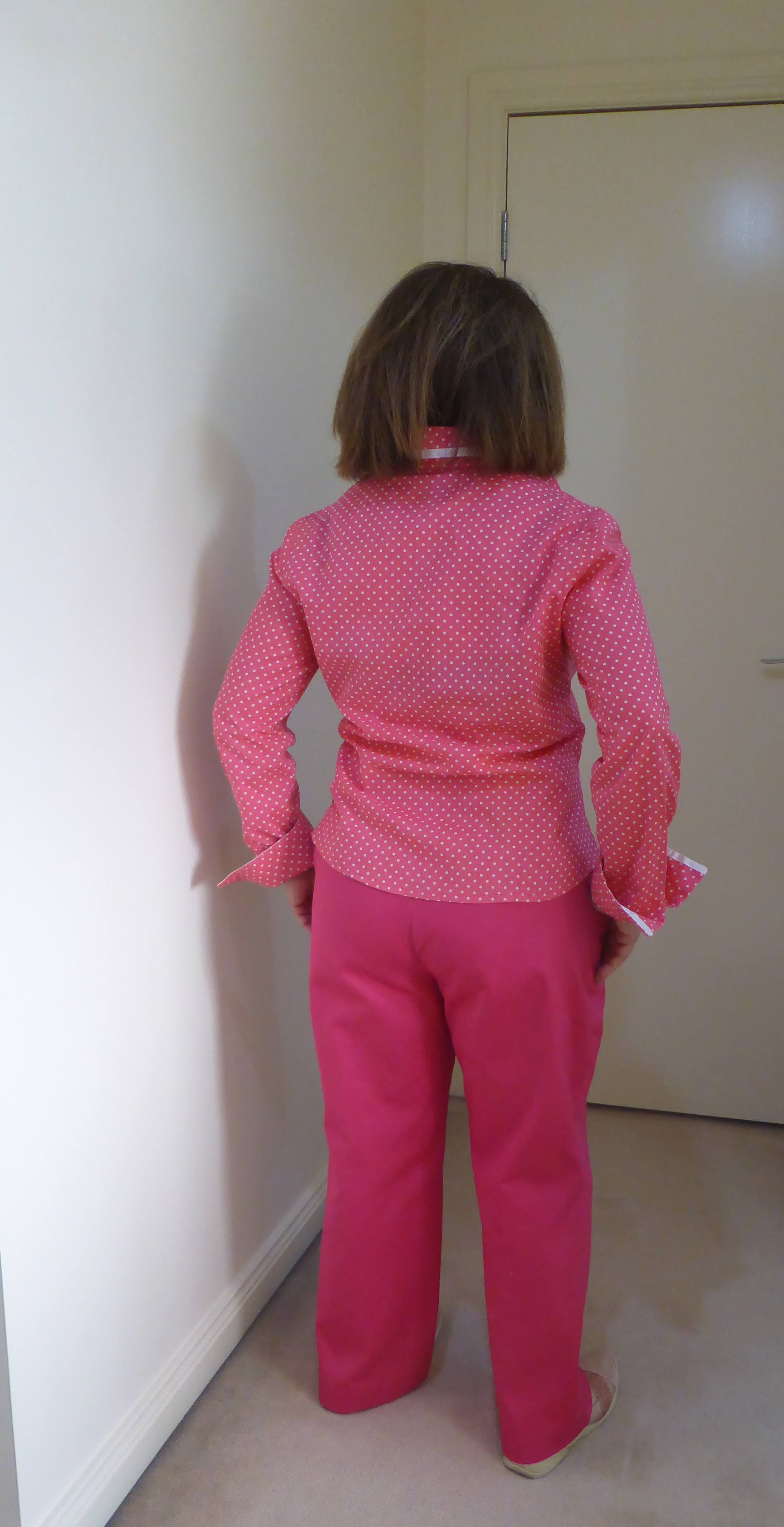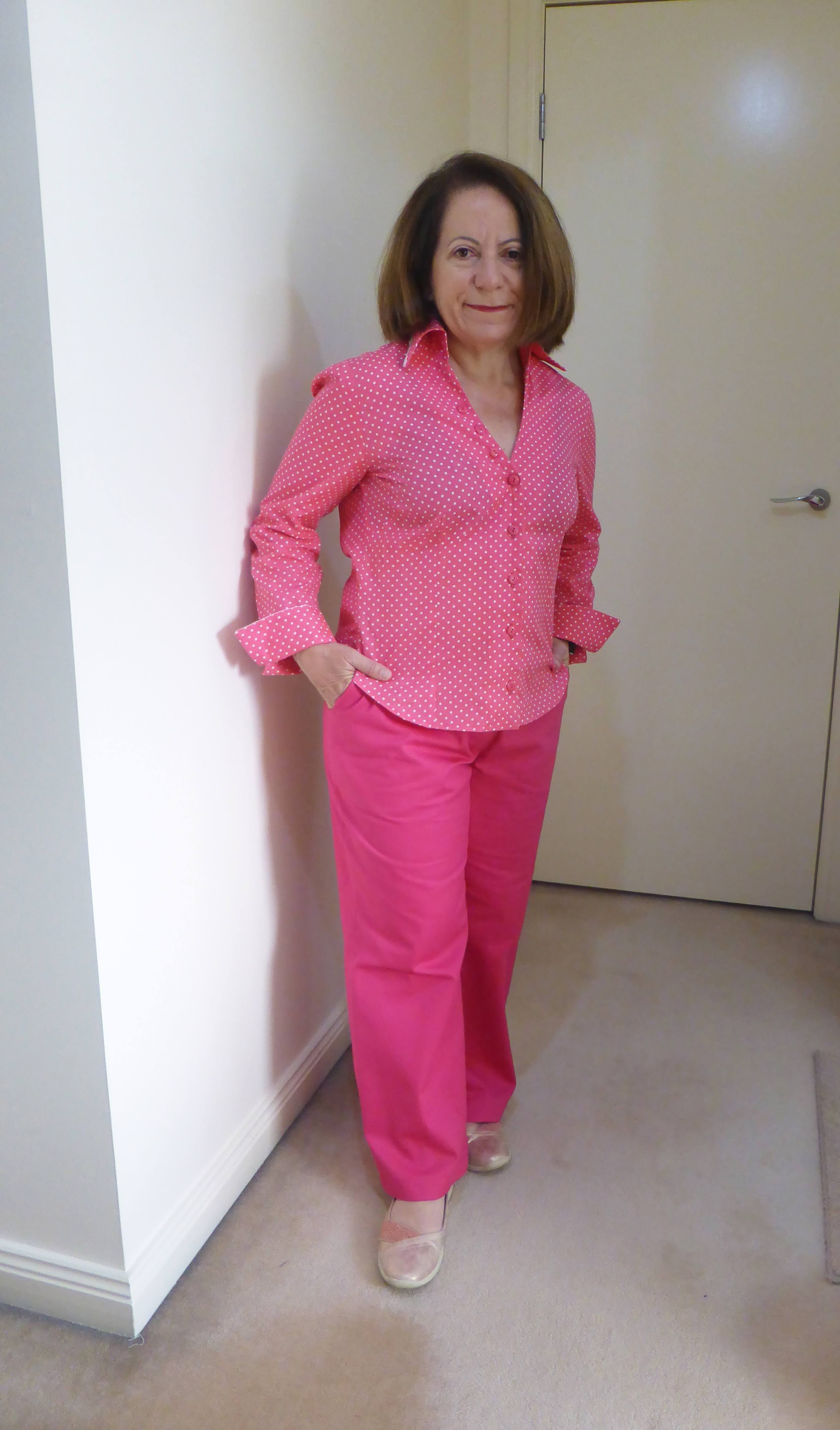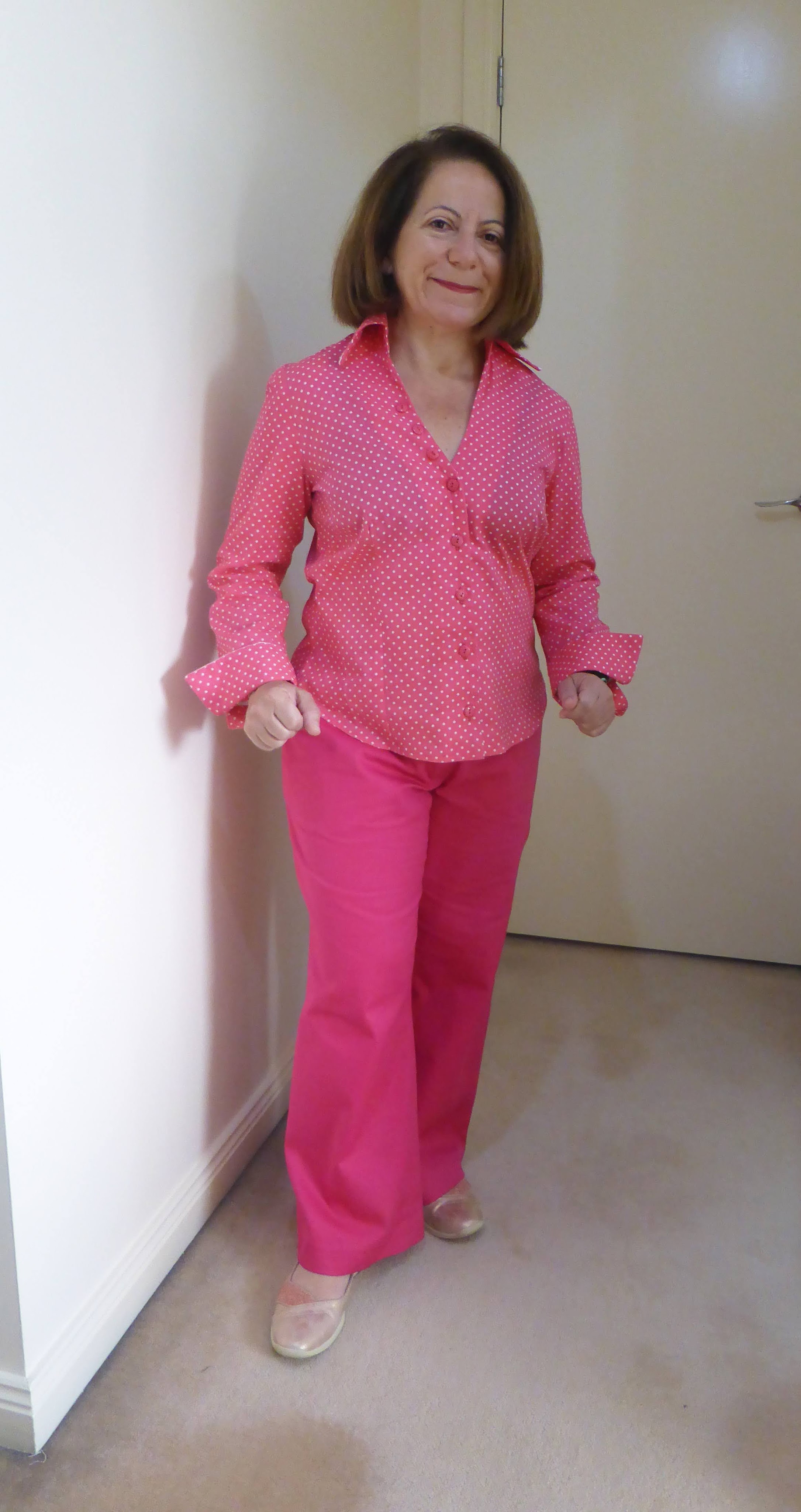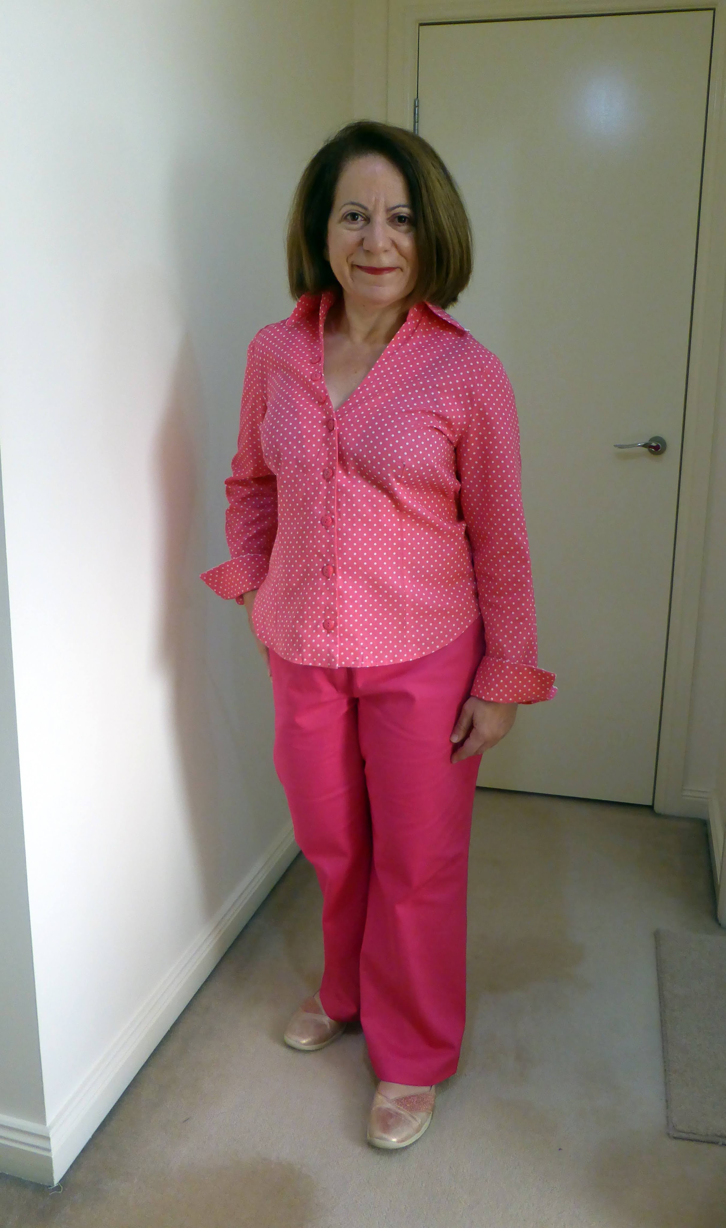 The colour is a ‘dark’ pink. I tend to wear dark solid colours in skirts and trousers and yes, the aim was to match the shirt I made last month.