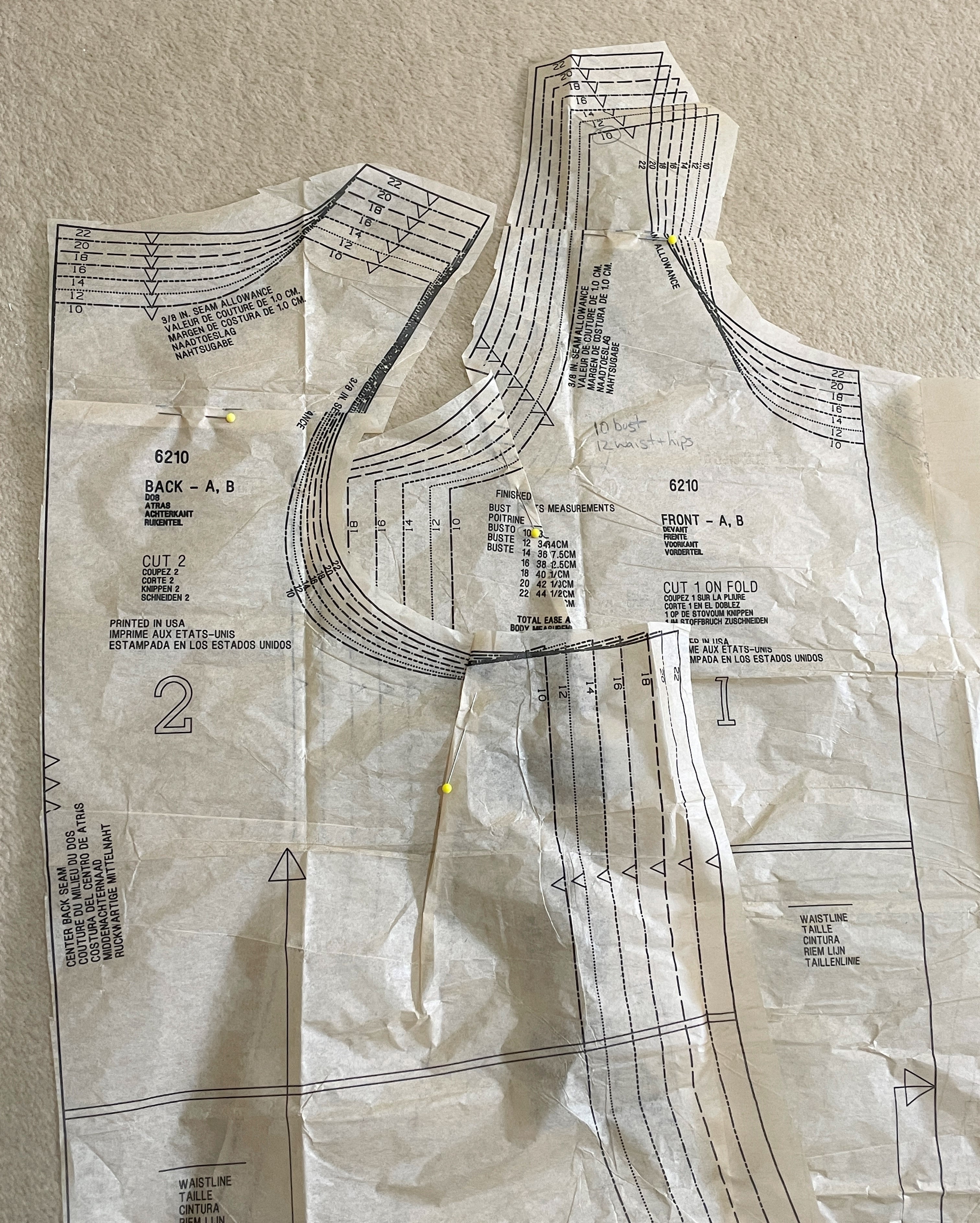 In an ideal world with an ideal figure, I wouldn’t need this adjustment but the reality is, I have to make this adjustment so the dress or top, sits properly on my body. I sew my own clothes so they fit me well and this New Look pattern provides some really easy places to make this pattern fit properly time and time again.