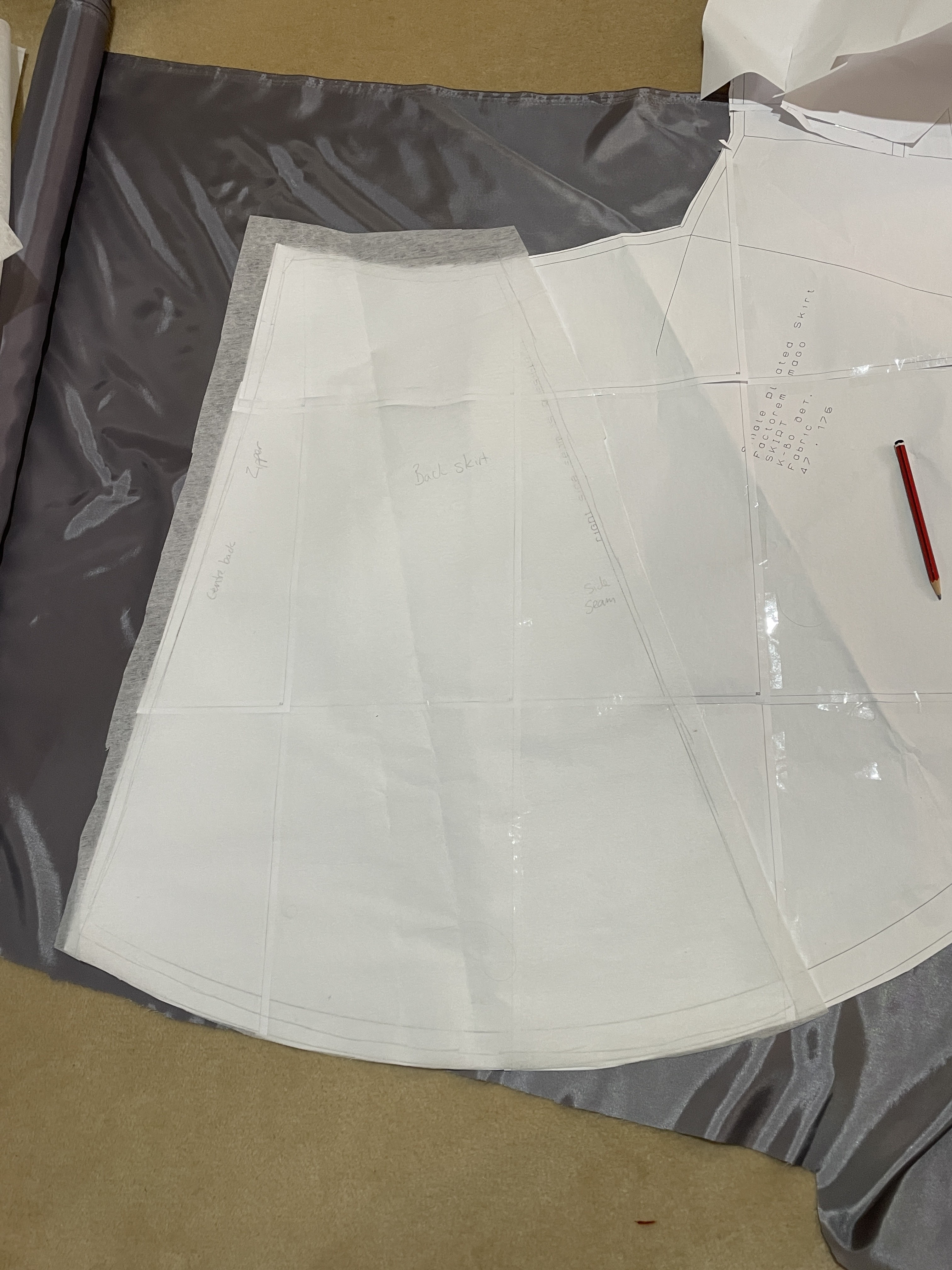 The skirt facings were my starting point. On the pattern, the left side of the centre back seam has the full length of the skirt. After lowering the centre back seam by 2.5cm and increasing the waistline by 2.5cm, I roughly traced off the back skirt lining pattern, adding roughly 1.5cm seam allowance.