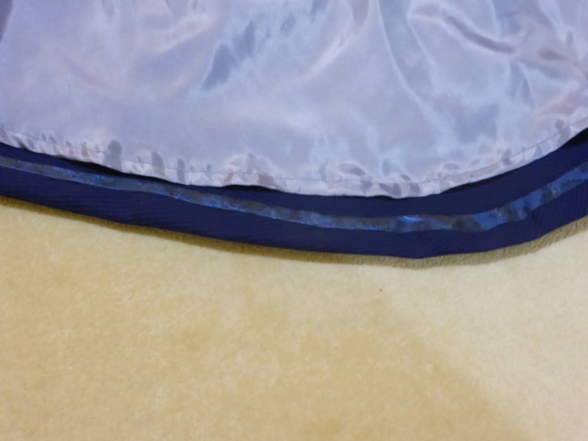 I finished the waistband properly, because it did fits my current shape. I was lucky to have an afternoon to cut bias strips in dark blue to finish the outer fabric hem edge. Machine sewing the lining was a breeze.