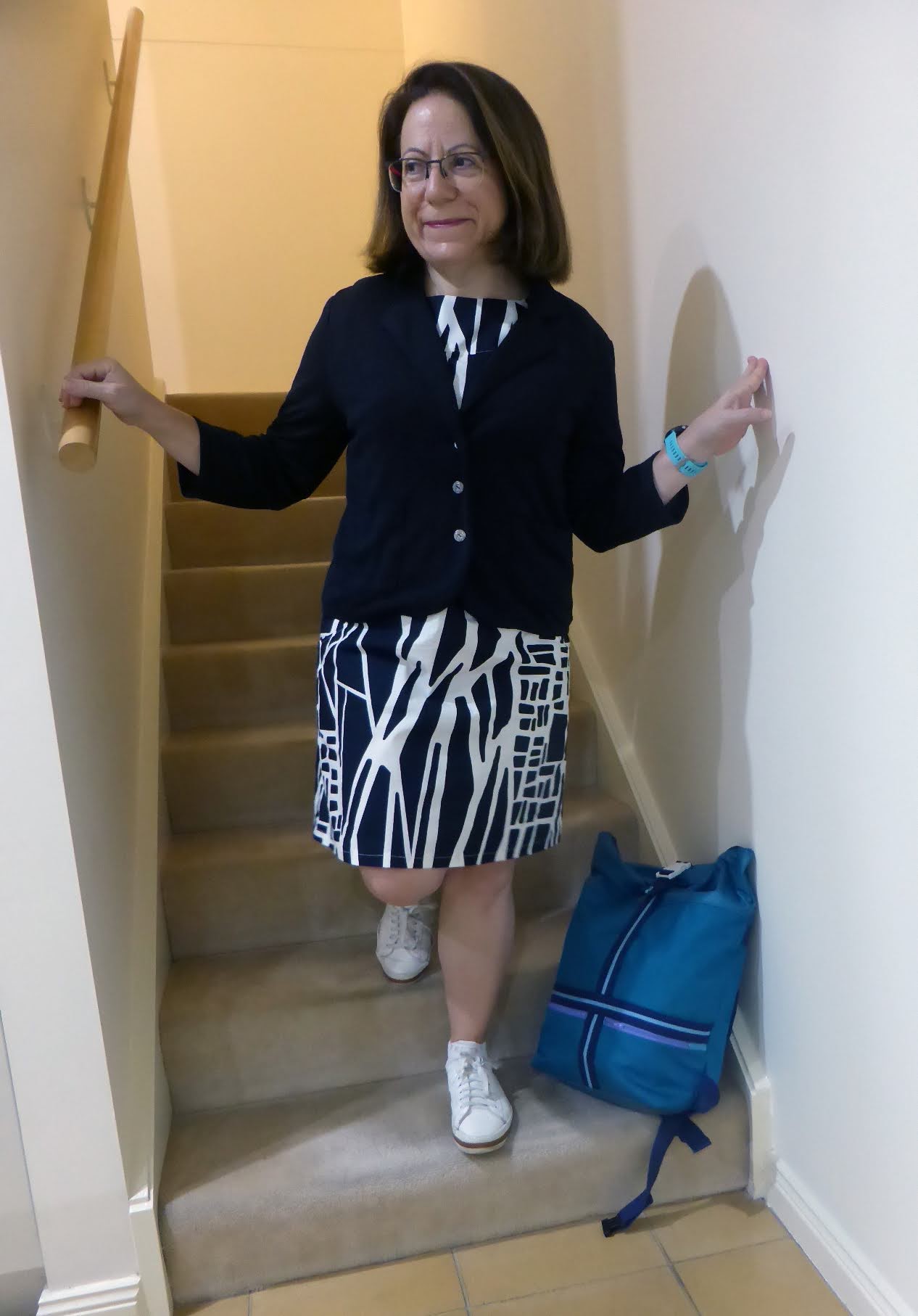 Day 2 was a back to the office day. I wore the Pauline Alice dress I made last year with a knit 3/4 sleeve jacket. My very handy laptop bag is the one I made in 2020 for Minerva. The jacket is also a Minerva project.