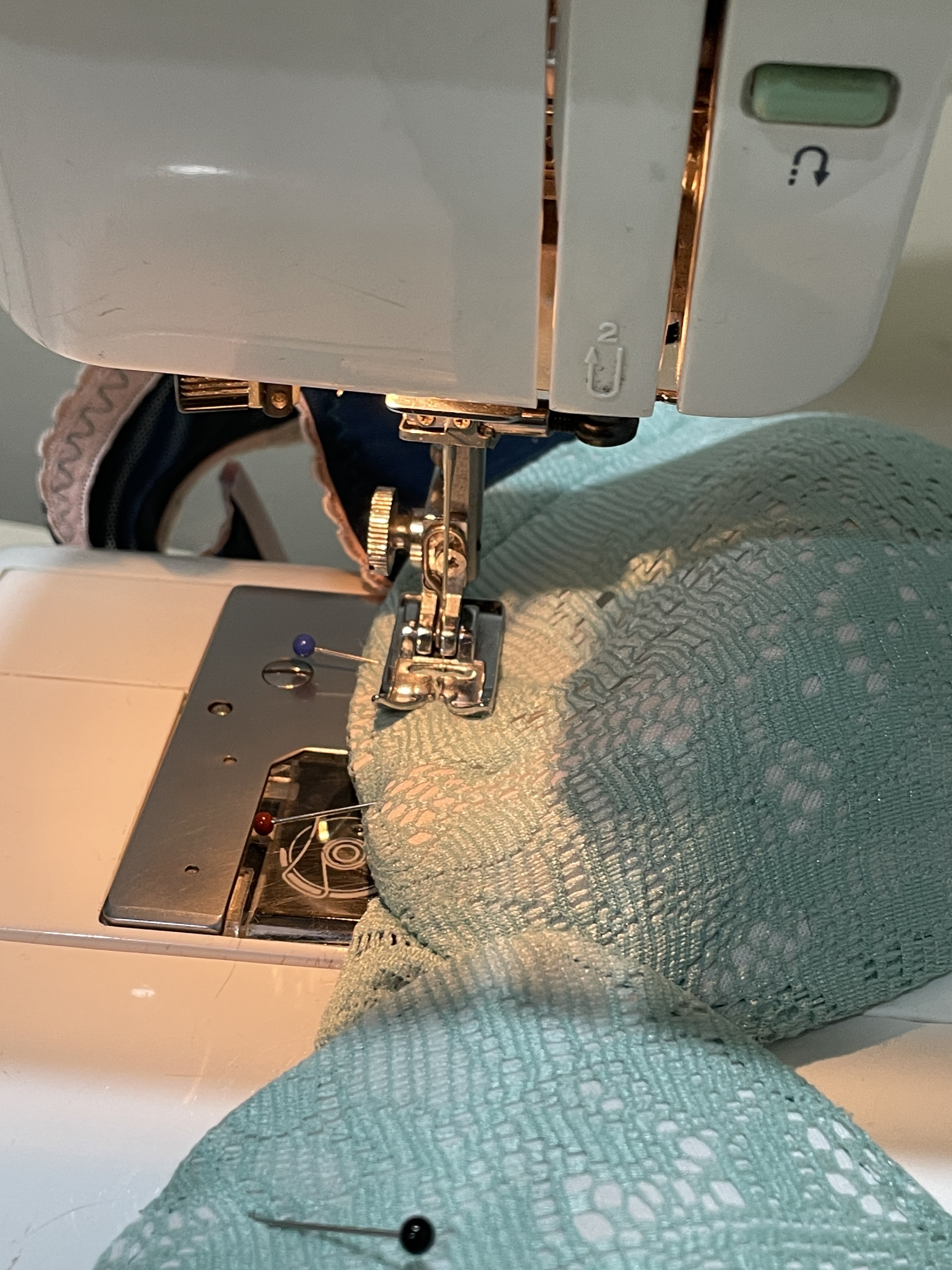 Earlier this year I bought a few types of lace from Minerva. The mint stretch lace is very delicate and can snag easily so I’ve used lingerie patterns that have lined options