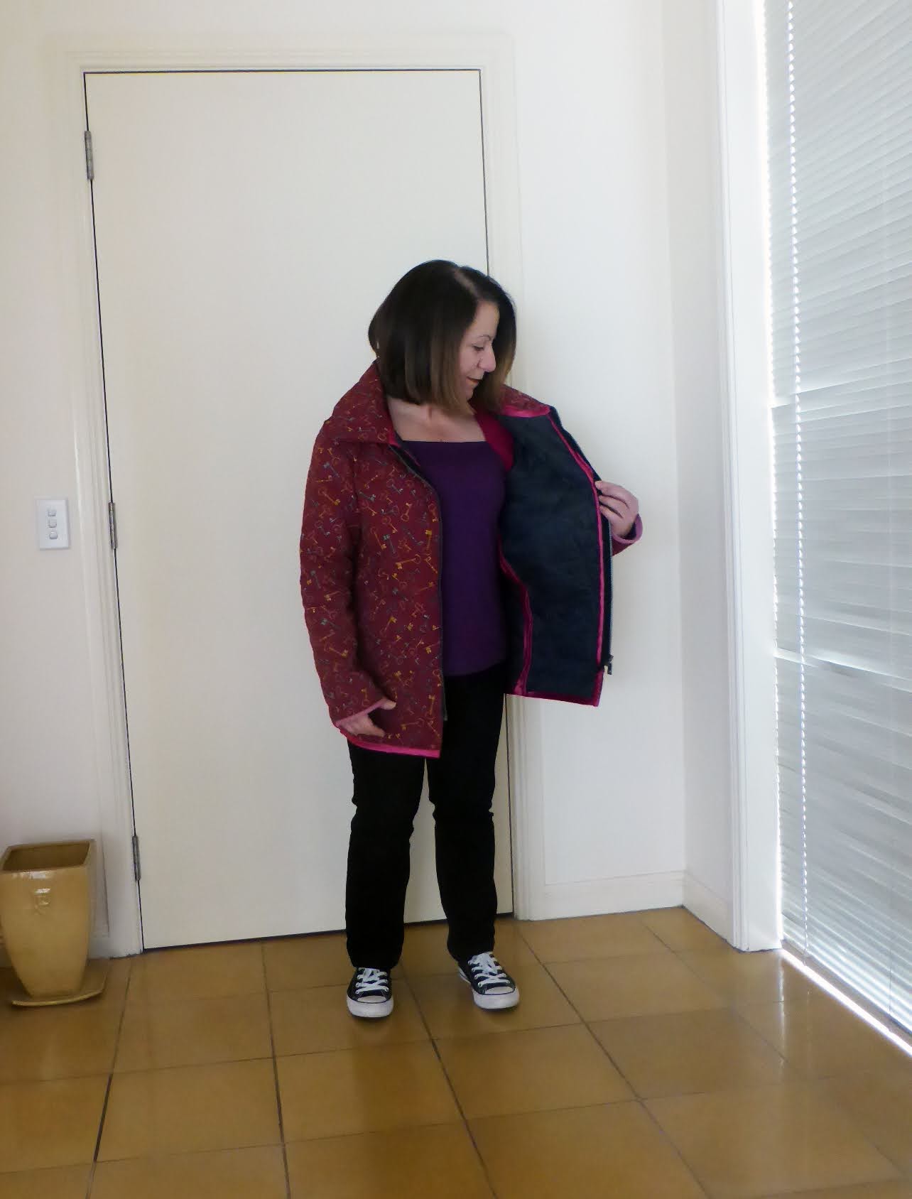 Broader back: I did wear this jacket as is in the basic size 12 and it was a snug fit. The fit is fine but not when I wore 2 bulky layers under the coat. This fabric is firm so when I decided to cut the centre back of the jacket and insert another 12cm in the width of the jacket, this became a really easy alteration. Oh the relief I got from making this coat bigger was worth the effort.