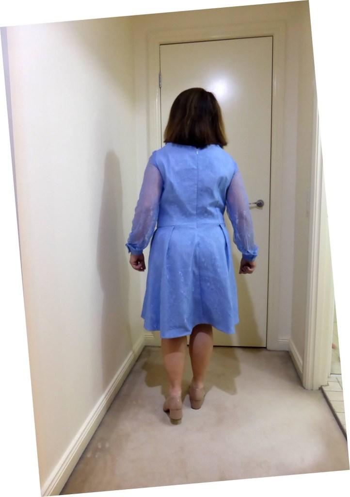 I’ve gone up a size at the waist because I need more room. Once I know when I’ll wear this dress I will adjust the waist width. Right now it fits my current waistline with tight pull lines. I’ll raise the back bodice waistline as it looks like there is some fullness there.