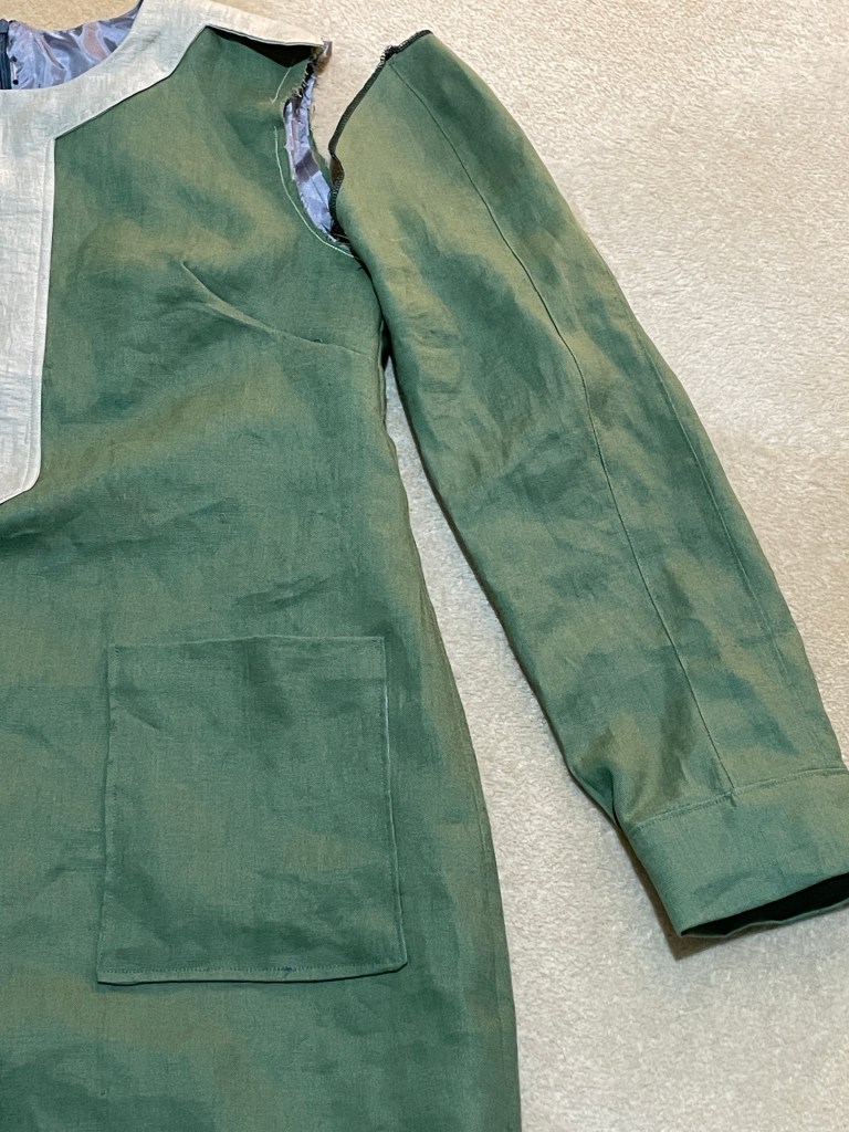 The sleeves are not lined. Only the dress body is lined. I used a lining fabric for this linen. On version 2 of this dress, my lining choice was different so as I post details about this dress, I’m hoping this helps you try this pattern, if you bought it and are hesitating to use it.