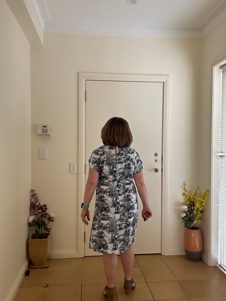 Simplicity only needs a button at the neckline for the closure. This pattern is so easy to make and wear as a dress option. In my next post you’ll see how I’ve used this print for a top option.