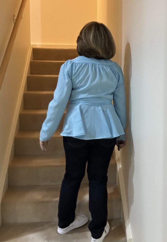 This style has a gathered peplum feature that I don’t normally try. This blouse also has gathers around the yoke.