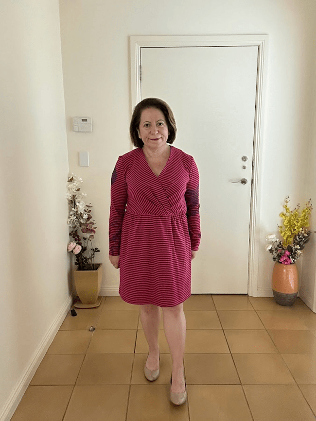 Front on, you can’t tell what the print is. Very wearable work dress right?