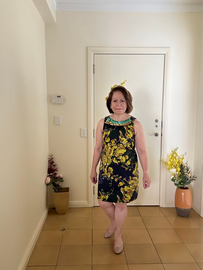 In 2022, I made a new dress using Julia Allison Cost Dancing lady orchid textile print for frocktails in Sydney.