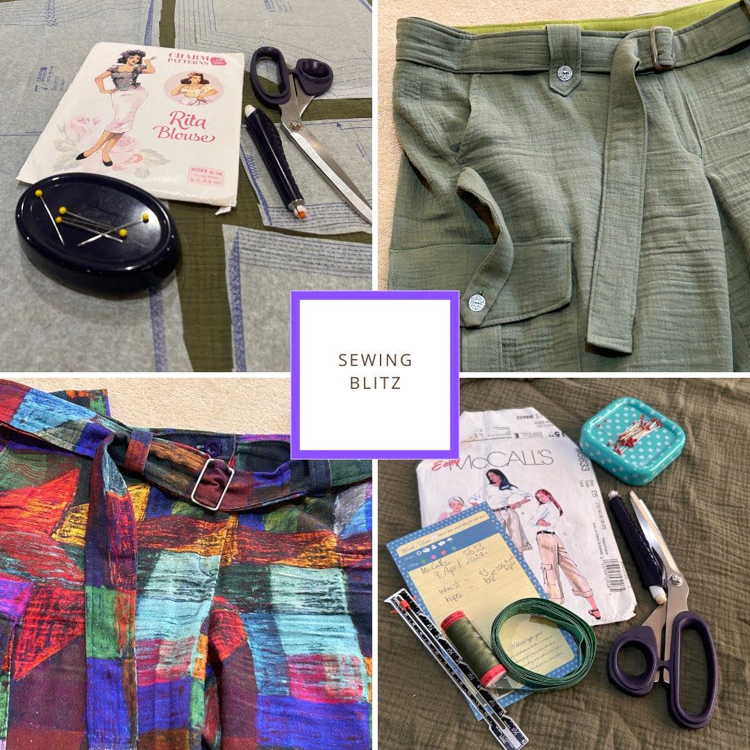 The sewing tally using 3 different Minerva fabrics is 2 cargo pants, 2 tops and plans for a coat and blouse.