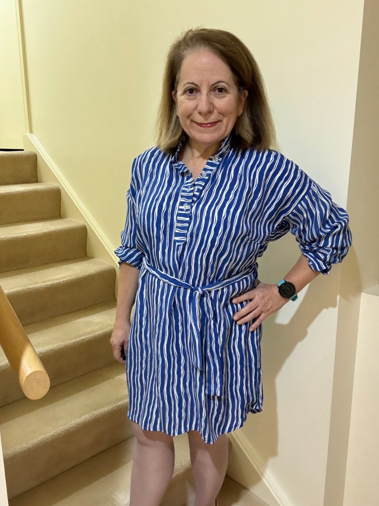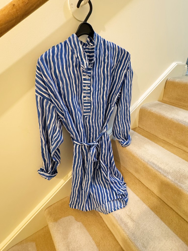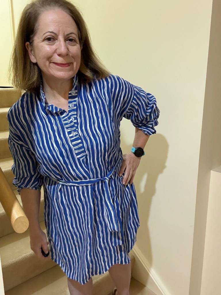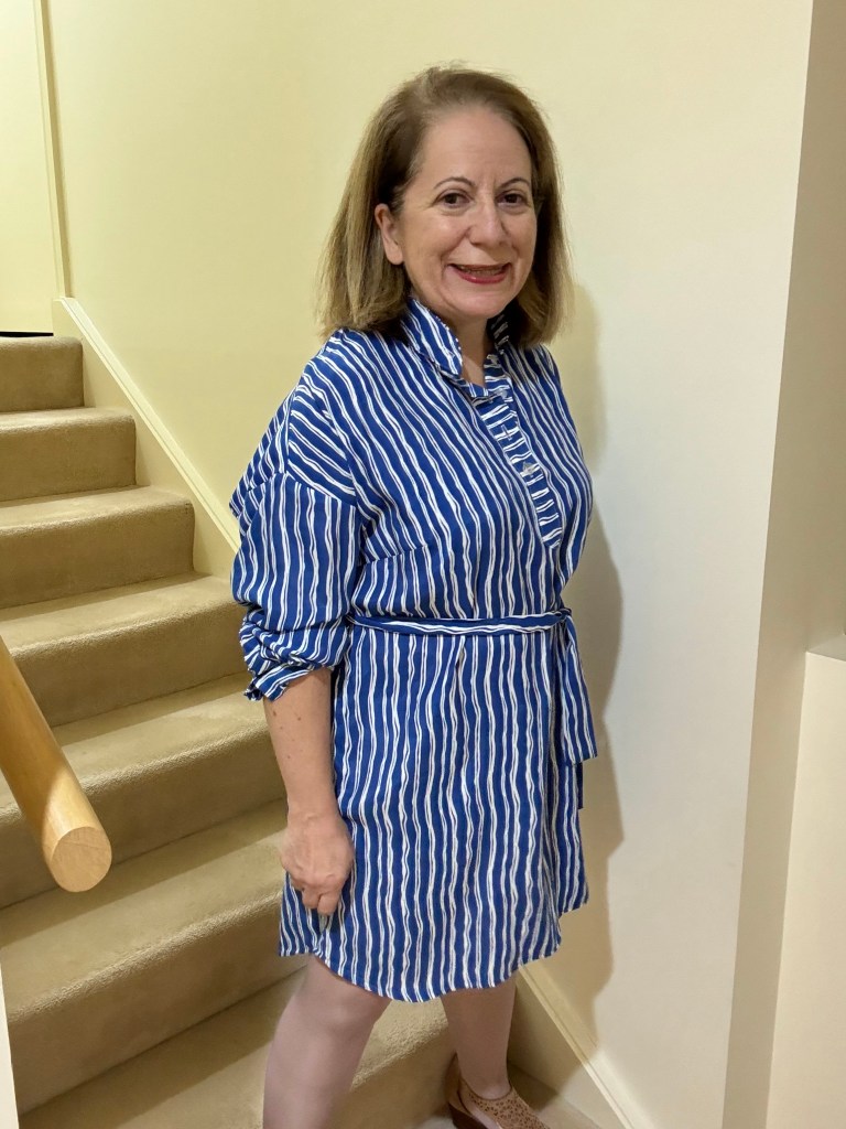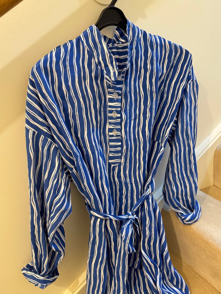 Drapers Fabrics sold a lovely blue wavy stripe that looks Mediterranean blue hence I finally made the dress.