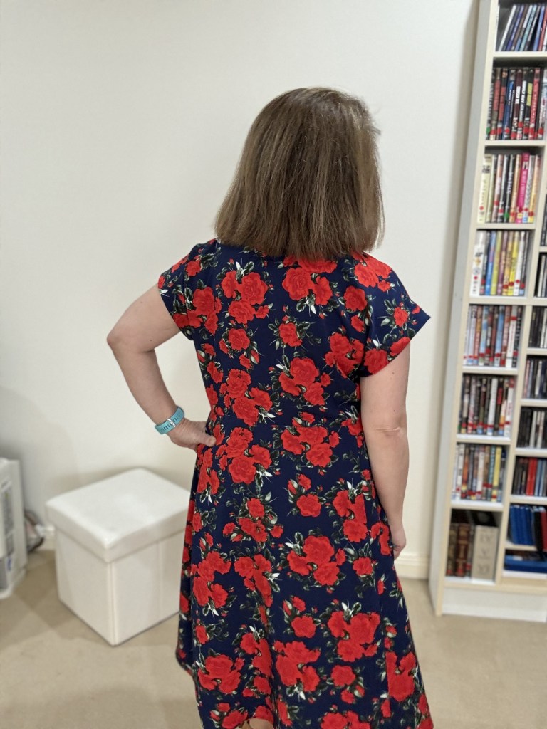 The next version will be size 12 and with an invisible zipper. I’ll take 20cm off the hem length for a shorter version. I’ll keep the sleeves higher than the pattern so you don’t get an eye full of my bra. I may lower the centre of the front skirt shaping that I raised. The point is really sharp and tricky to sew now. I think I’ve added plenty to the bodice to cover my cleavage on the next version.