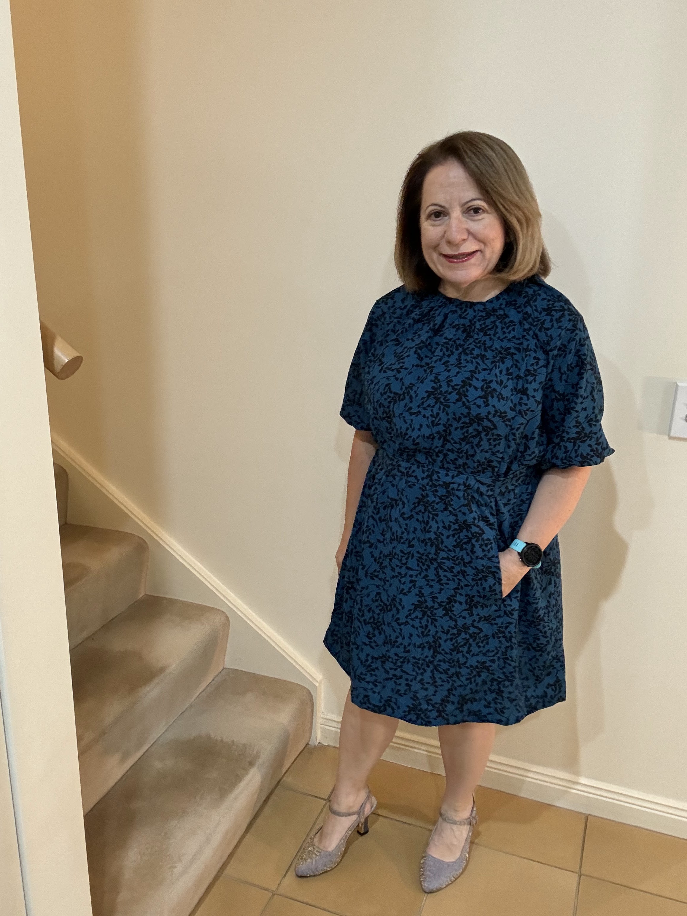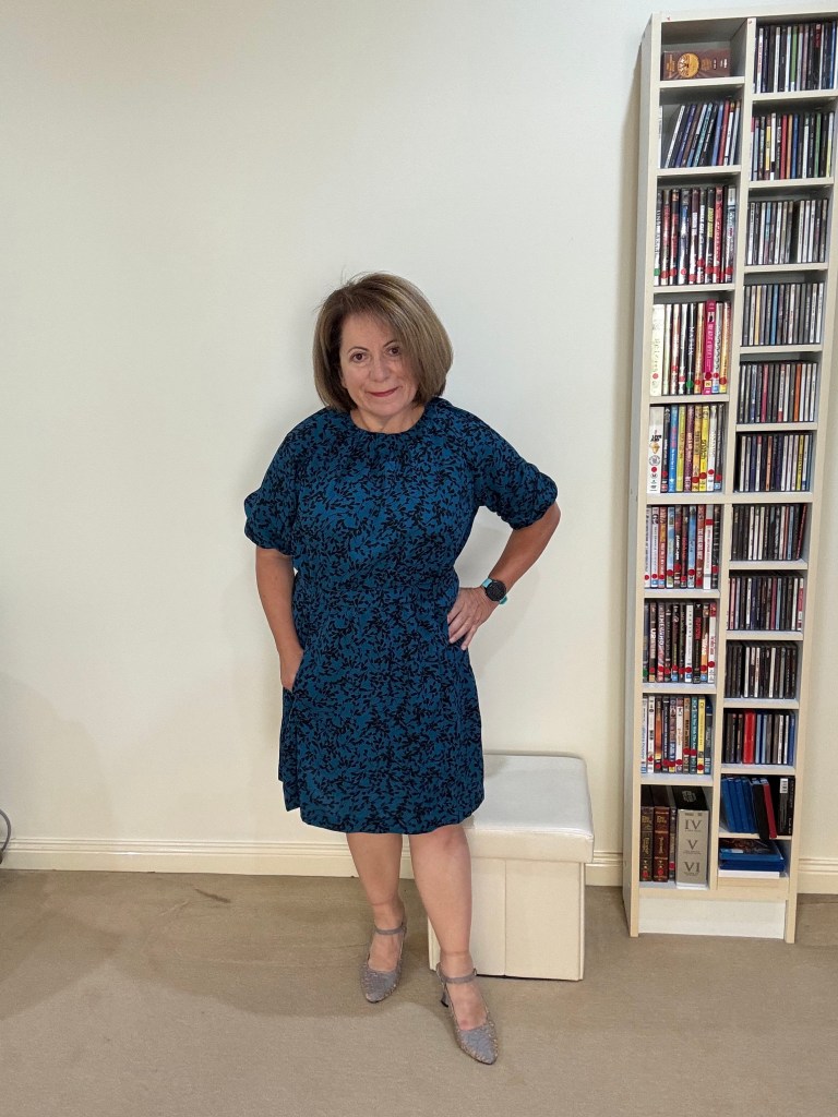 Initially I found the first version (blue) neckline was a bit too high. On the second version I lowered the neckline by 3cm. Once I compared both dresses, I then liked the first version better. But I got that out of my system.