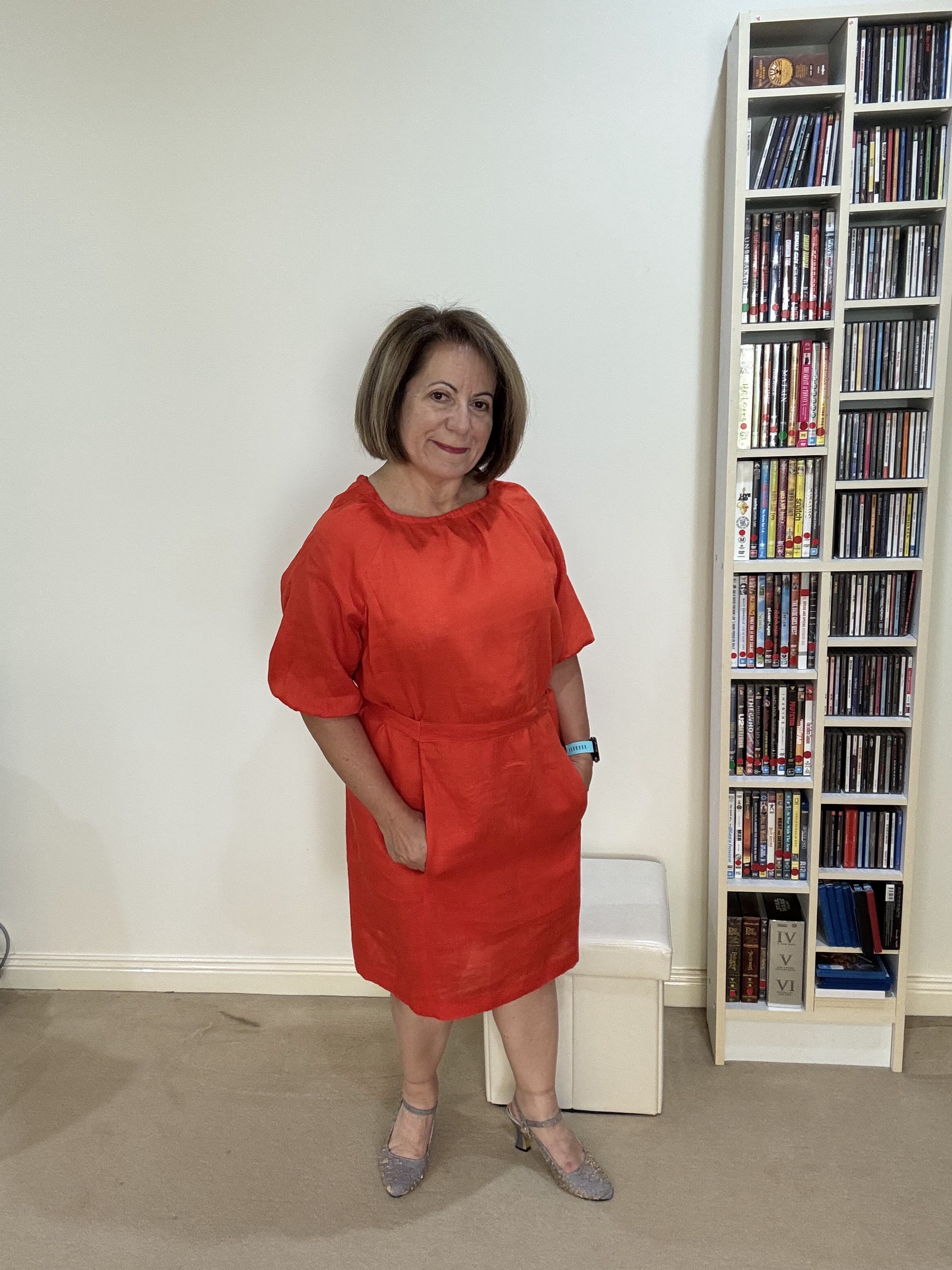 The version I sewed was View B and D cup. I sewed this dress initially in a very light weight linen (orange). Then in the John Kaldor remnant.