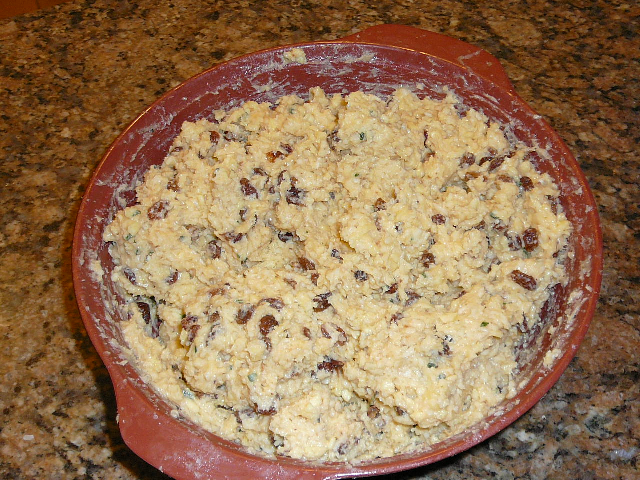 - In a large dish, add all the cheese. Then add the semolina, flour, yeast and enough eggs to make a wet but firm mixture. Set aside in a cool place over night, but cover it with a towel.