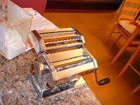 - Break pieces of dough into portions and roll out on a clean floured surface to form a round shape. (This is when we used the pasta maker to take the pressure off my shoulders and hands).