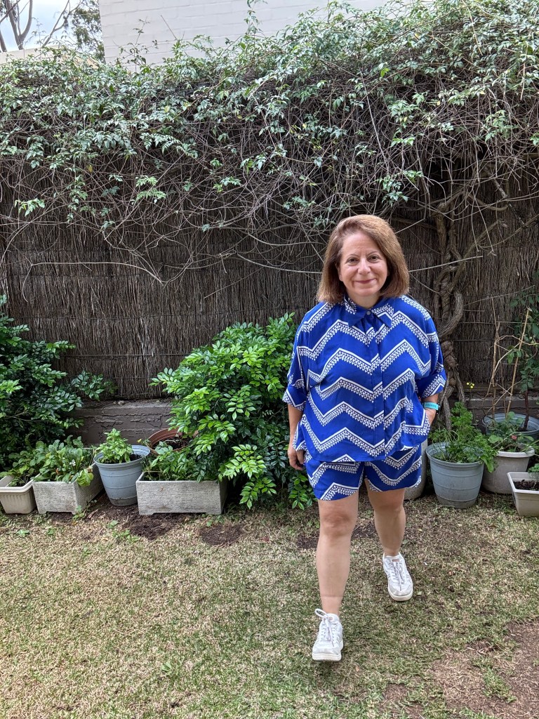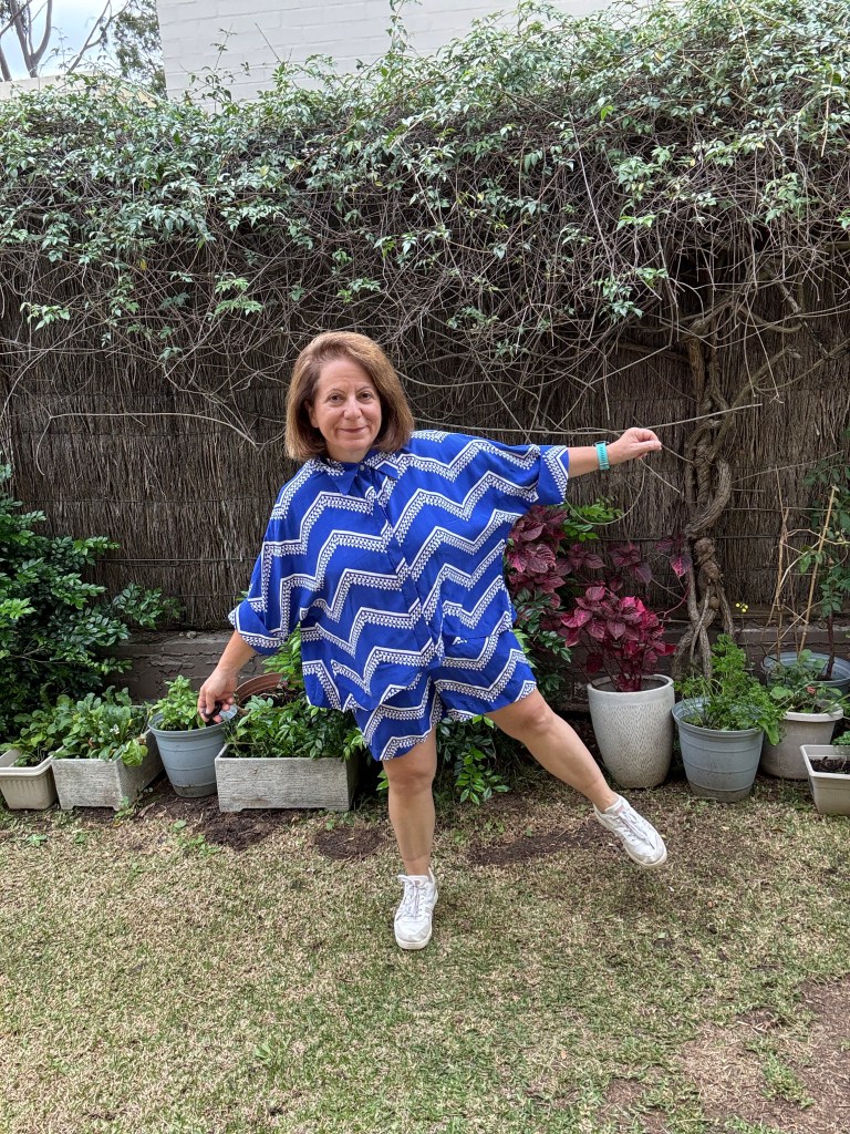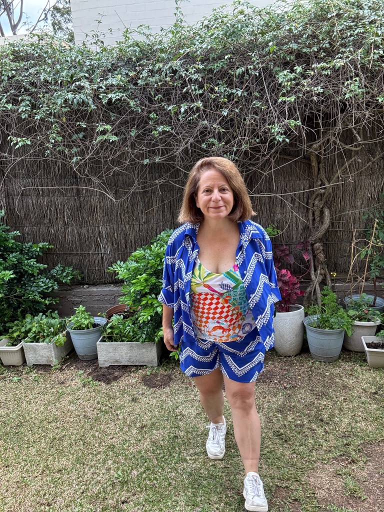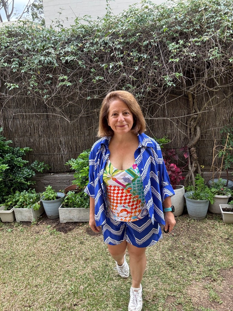 This is the blue shorts set I sewed to check how Wren would work on me. This is my wearable toile and because it worked out, it’s a brilliant blue shorts set.