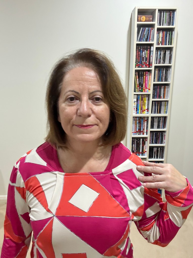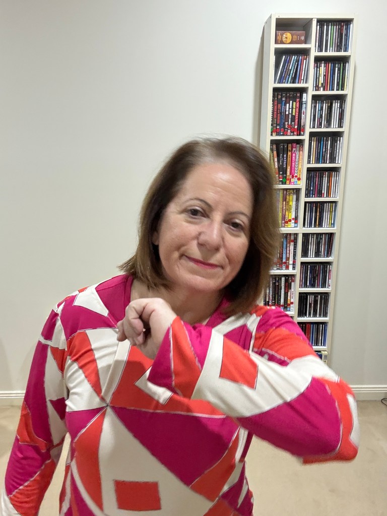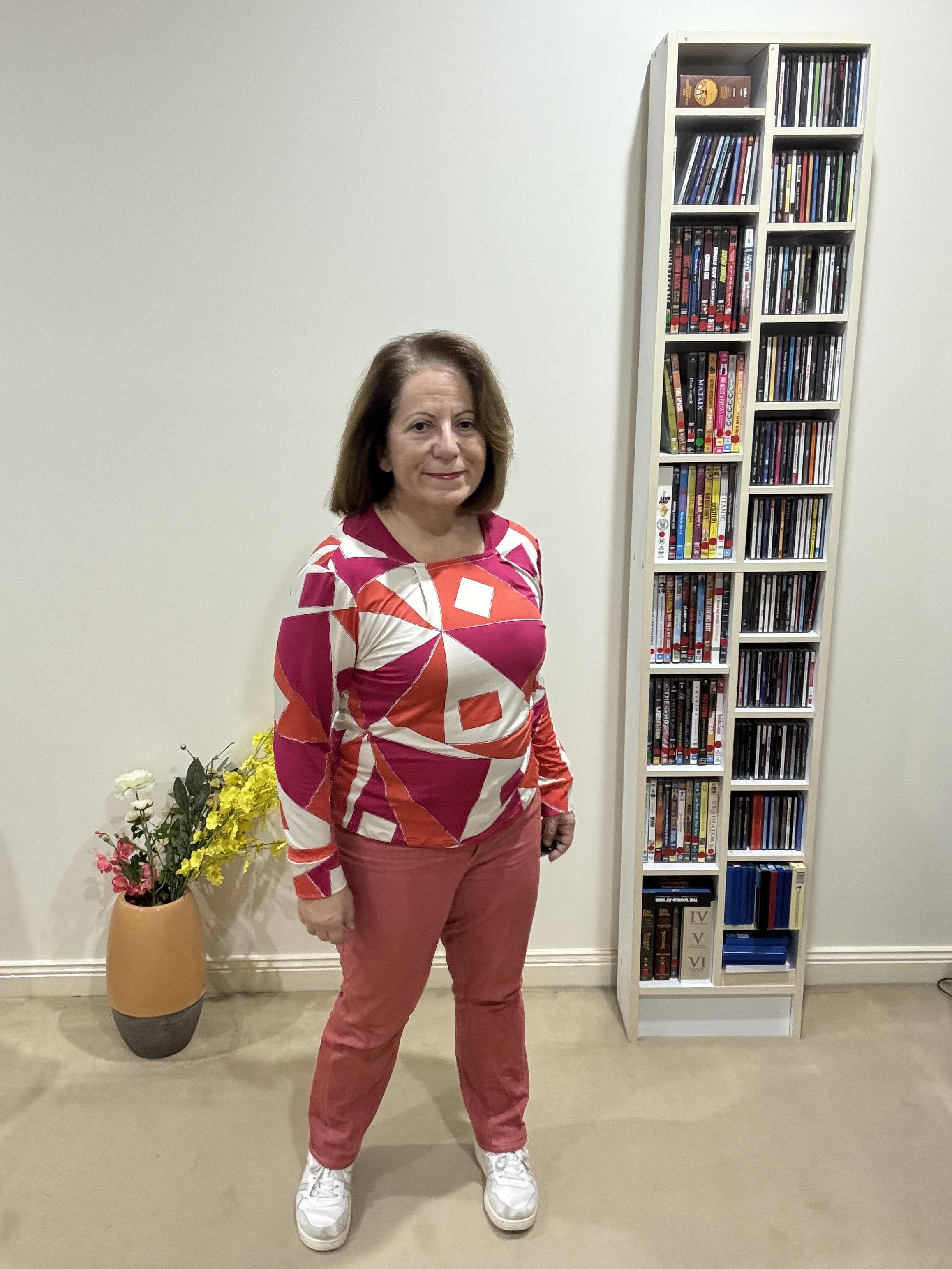 ✅ See how the bodice length works with my jeans. Too long tees swallow me and emphasis my width. Not a good look.