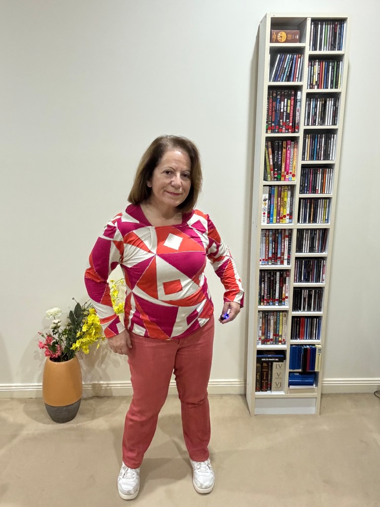 Some printed knits lose their colour and become baggy when I wear them each week. I’m always on the look out for simple knit tops I can sew again and again.