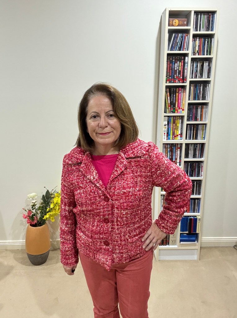 Now I have a lovely jacket to wear both indoors and outdoors. It’s comfortable. This tweed coating moves with me so I feel very cozy and can move about easily
