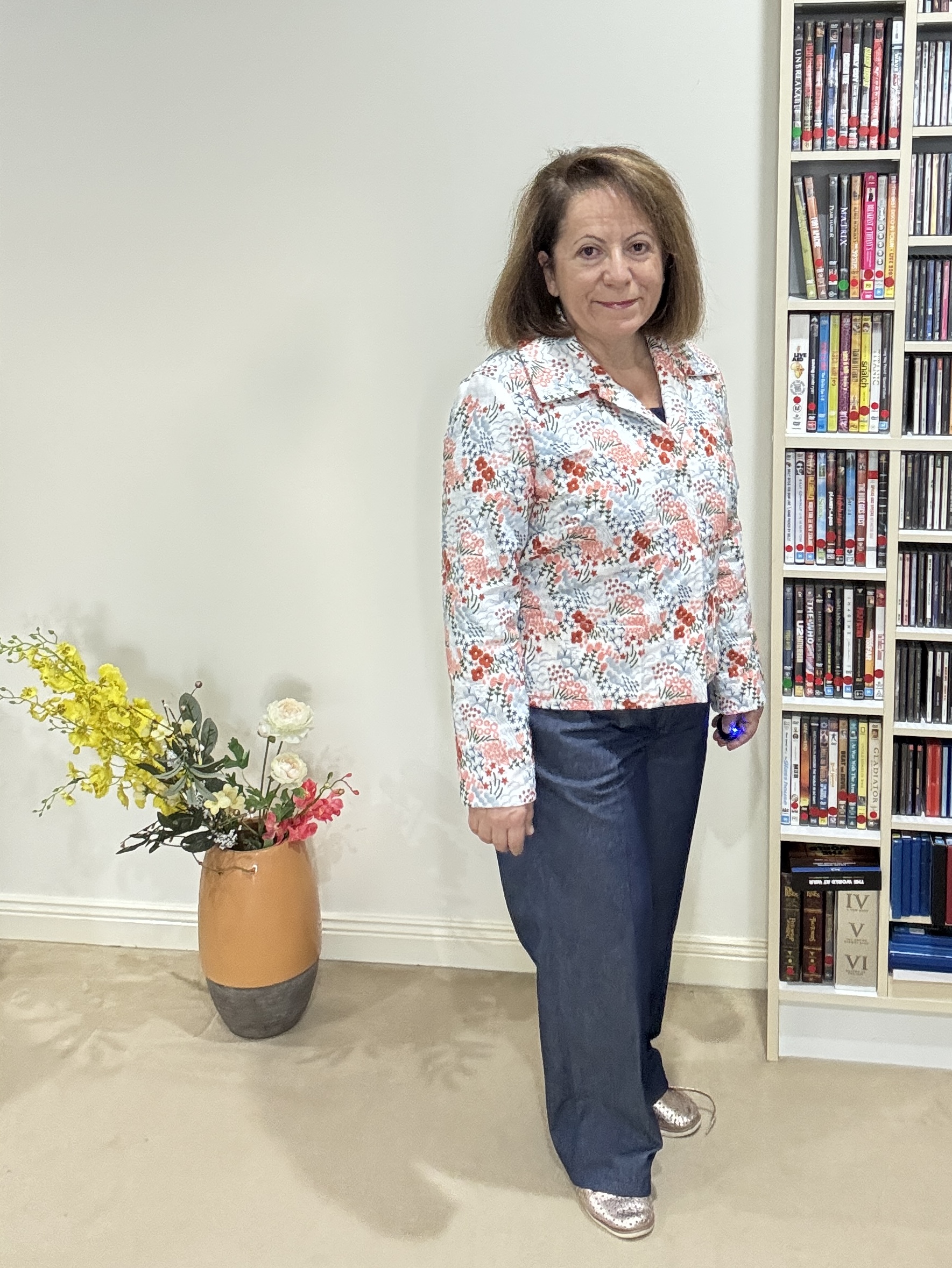 Then choosing from their embroidered fabric range, I chose this white cotton/linen based fabric for a simple lined jacket.