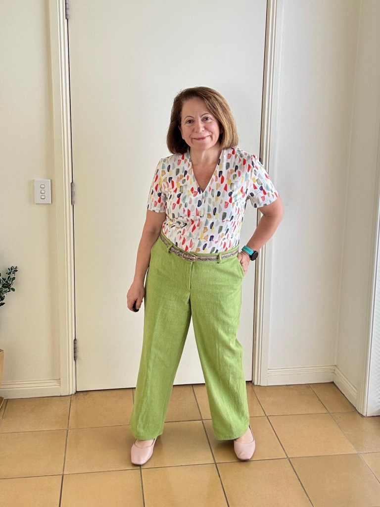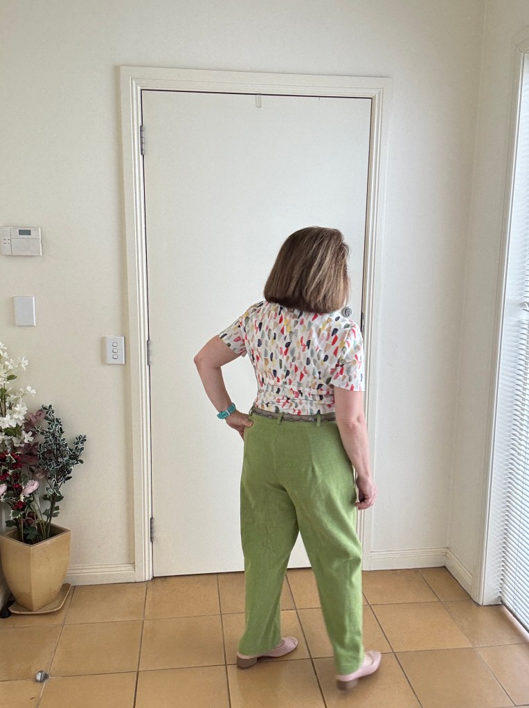 Originally made as an elastic-back pants style, but honestly… they felt a bit sloppy. So, I spent a day unpicking and recutting this linen into this straighter leg version with a fitted waistband and zipper. Love how the centre back seam makes it easy to adjust for weight changes – clever design!
