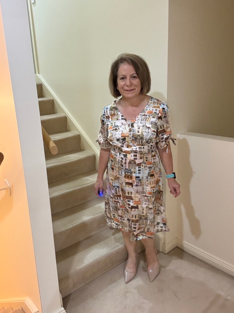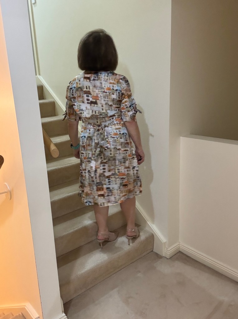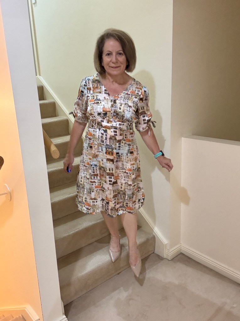 When I tried the dress on with heels, my husband suggested a below‑knee hem — and he was absolutely right. The longer length balances the bold print beautifully and adds a touch of elegance to the overall silhouette.