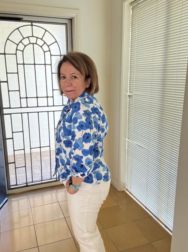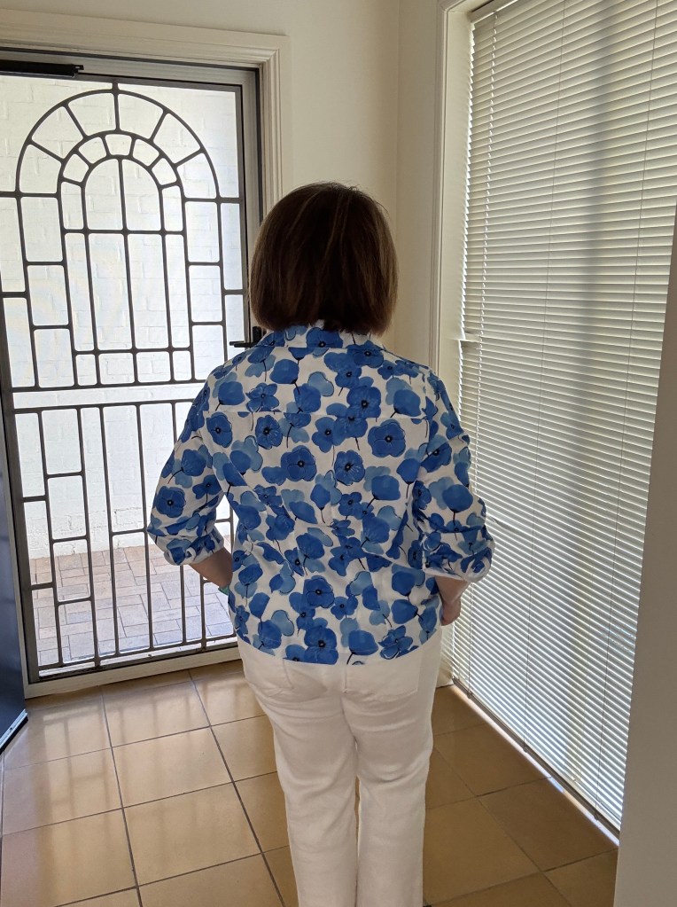 Would you believe I unpicked the back of this blouse and recut the back bodice? There are now 2 sets of darts to gain some shaping across the back.